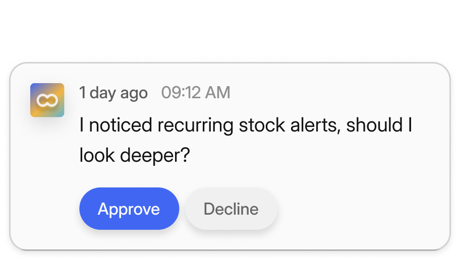 Lowi drafts the fix: an alternative flow, a smarter route, a new integration. You review. Approve. Done. Lowi runs it and moves on to the next task.